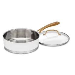 Cuisinart Classic 2.5qt Stainless Steel Saucepan With Cover And Brushed Gold Handles Matte White