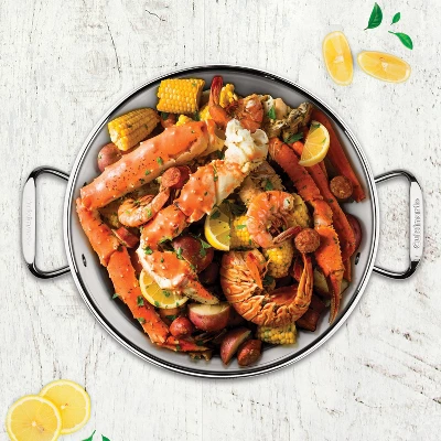Perfect for large batches of soups, stews, stocks, vegetables, and seafood boils. Premium stainless steel offers optimal cooking performance. Three-layer base heats quickly and spreads heat evenly, eliminating hot spots. Wide, easy-grip handles. Rims of cookware are tapered to make pouring clean and easy. Glass lids fit tight to lock in flavor, texture, and nutrients. Wide, easy-grip handles. Oven safe to 500ËšF. Glass lids are oven safe to 350ËšF. Cook on stovetop, in oven, or under broiler. Interior measurement markings for easy convenience. Freezer safe for easy food storage. Dishwasher Safe. Lifetime Warranty.