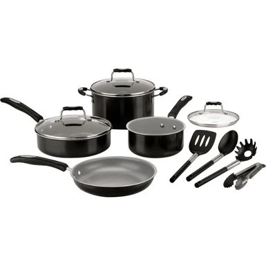 | Item(s) Included: | 2 Qt Saucepan w/cover, 3 Qt Saucepan w/cover, 5 Qt Stockpot w/cover, 10″ Skillet, Slotted Turner, Solid Spoon, Pasta server, Nylon Tongs |
