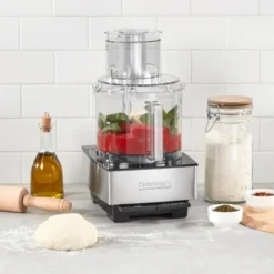 Cuisinart makes cooking for crowds easy and fast with the Custom 14™ 14 Cup Food Processor. Made from brushed stainless steel, this sleek kitchen workhorse is a breeze to use and will whir through prep and cooking with ease. Whether you are making a weeknight meal or a weekend celebration, the large capacity work bowl will hold everything as the 720 watt motor makes quick work chopping whole fruits and vegetables, shredding cheese, or kneading dough.