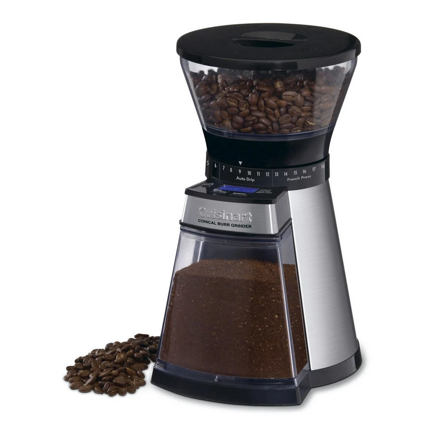 The elegant brushed stainless steel Cuisinart Programmable Conical Burr Mill produces perfect results every time for all your coffee needs with 18 settings, from extra coarse for your French Press to extra fine for rich espresso. The conical burr grinder produces a uniform grind without sacrificing the natural oils of your coffee beans for rich, flavorful results. With an easy-to-read LCD display showing the time, fineness, and number of cups, coffee is easy and fresher than ever.